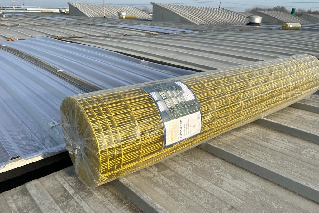 Le reti HIVIS della Pasini Group installate a protezione di questi lucernari rappresentano un importante dispositivo di protezione. Essi permettono ed agevolano la calpestabilità di superfici potenzialmente fragili e pericolose, evitando così lo sfondamento delle stesse durante il passaggio.