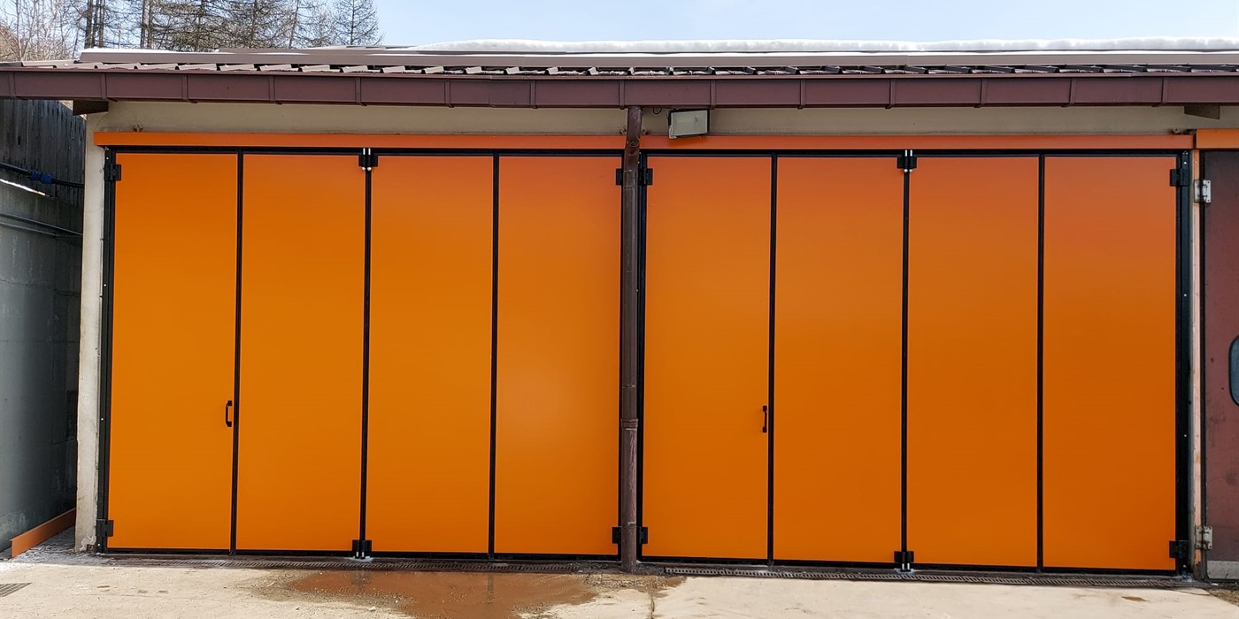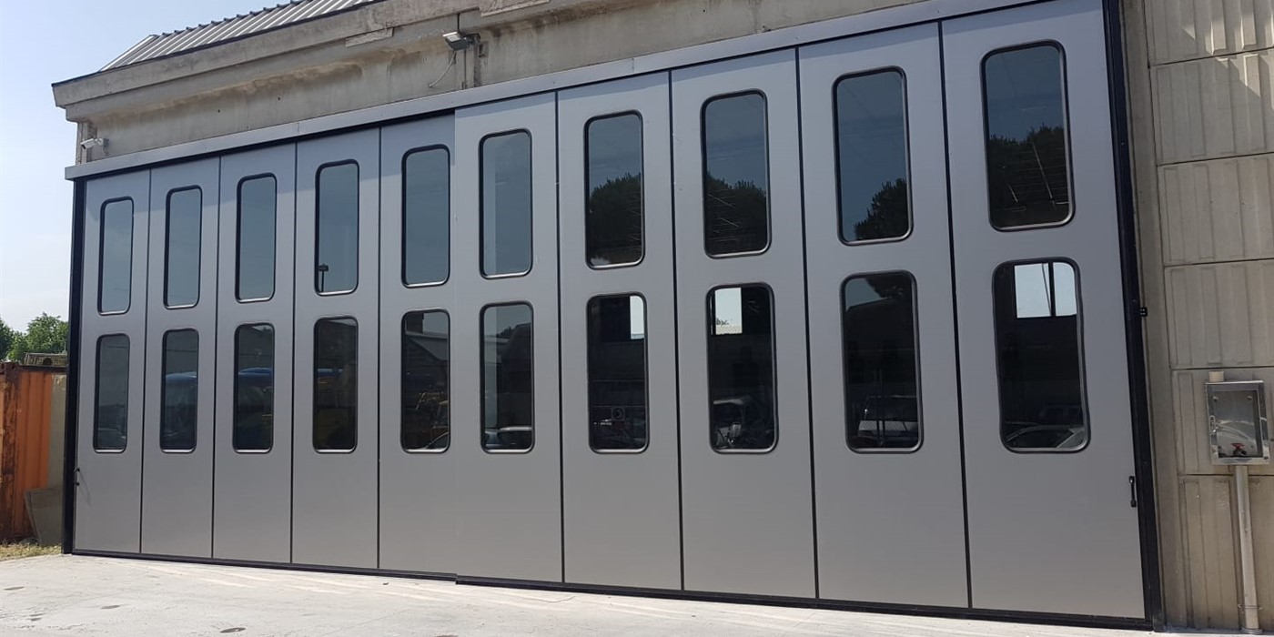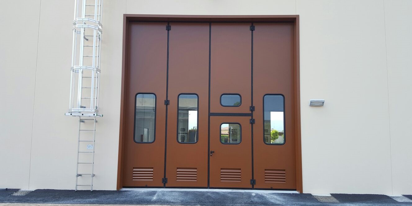 Negli edifici industriali, il portone a libro è una parete fissa in grado di aprirsi con un ingombro superiore minimo e con relativo un ingombro laterale. Si tratta di un sistema di chiusura sicuro sia per quanto riguarda l’anti-intrusione sia per gli aspetti inerenti alla sicurezza sul lavoro. Nella sua variante senza guide a pavimento, il passaggio pedonale non presentando inciampi, è utilizzabile come uscita di sicurezza mentre la versione manuale possiede un’apertura maneggevole e di facile utilizzo.